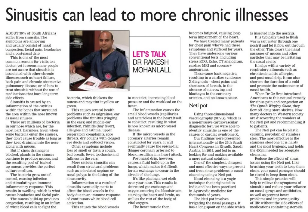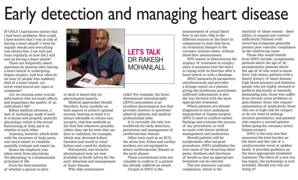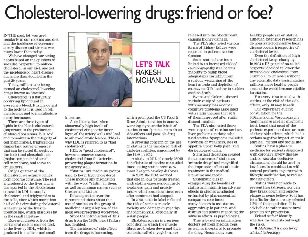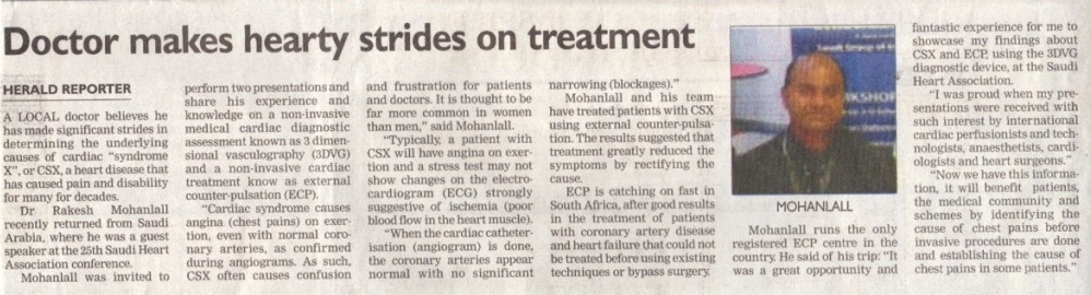 Dr Mohanlall featuring in Sunday Tribune Newspaper –